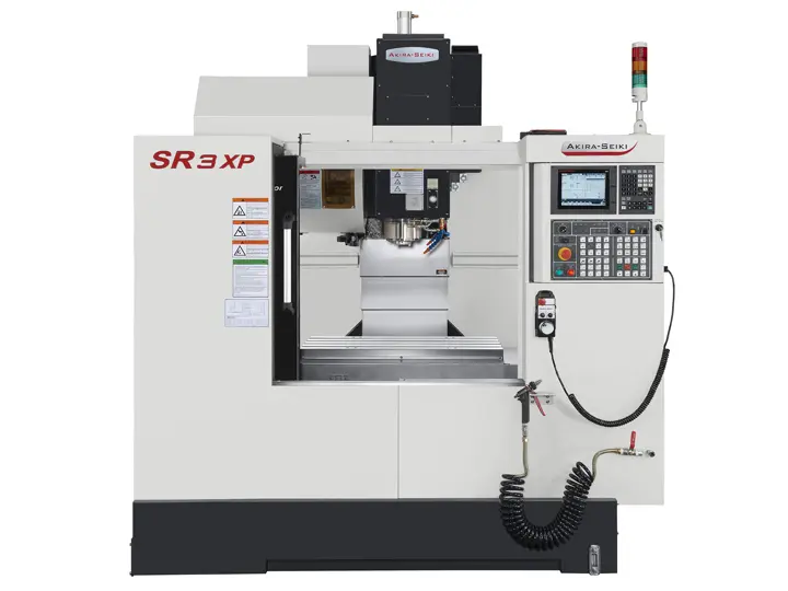 AKIRA SEIKI SR2A XP Vertical Machining Centers, new condition. Features include X: 22.0", Y: 16.0", Z: 18.0", 15 hp, 11,000 RPM, BT40 Taper, ATC: 20, and a 15"W x 27.5"L table. Ideal for precision machining needs.