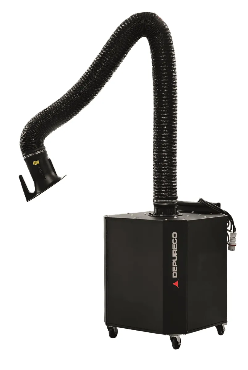 Welding fume extractor with 1.5HP motor using 120 volts. The unit has an articulating arm and casters making it easy to move around for any welding need. With the optional carbon filter it completely removes the welding fumes.